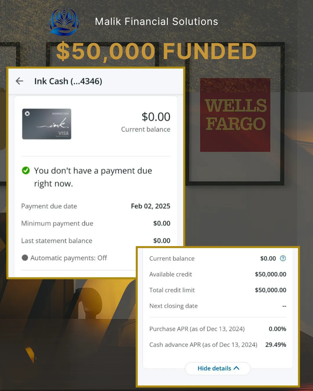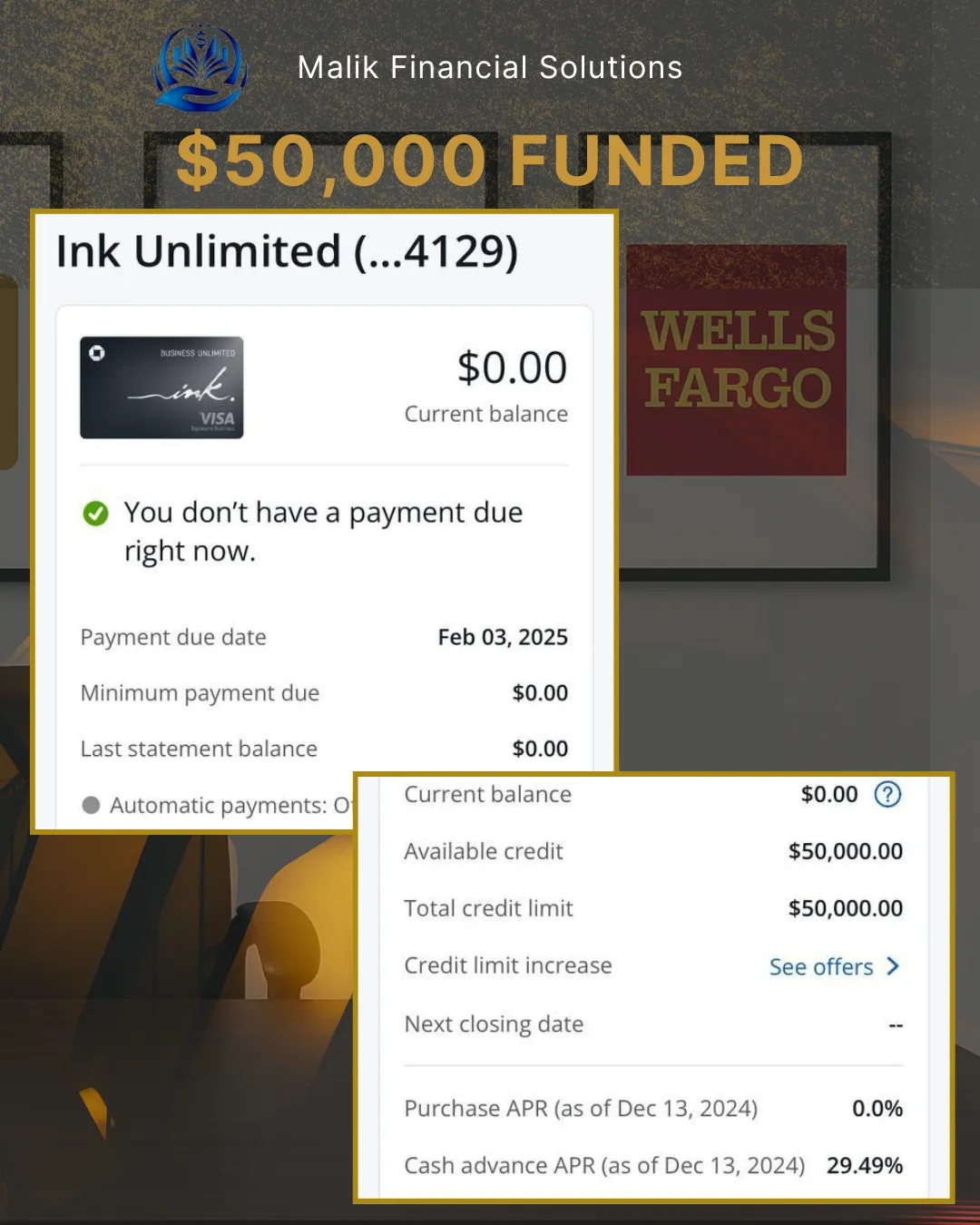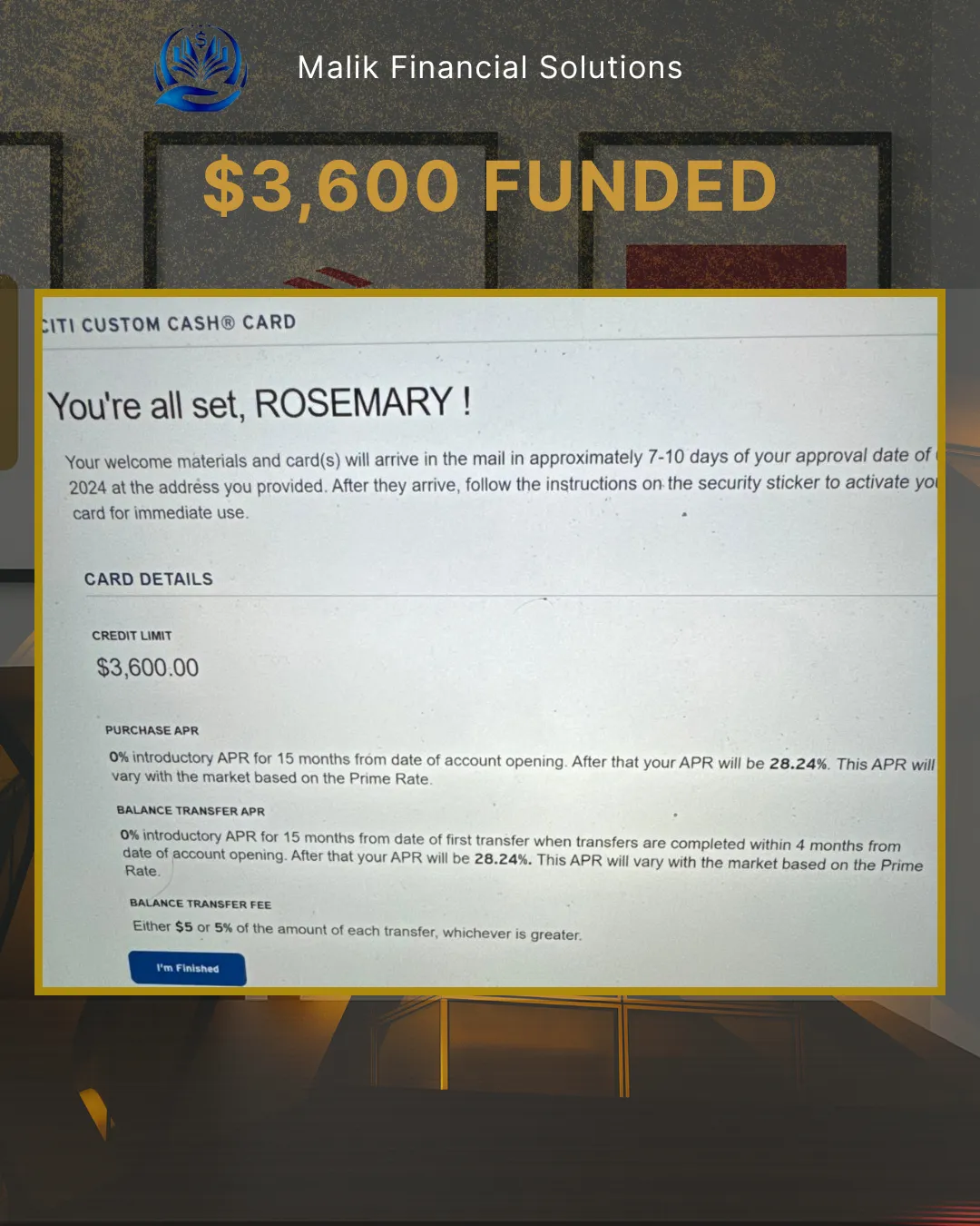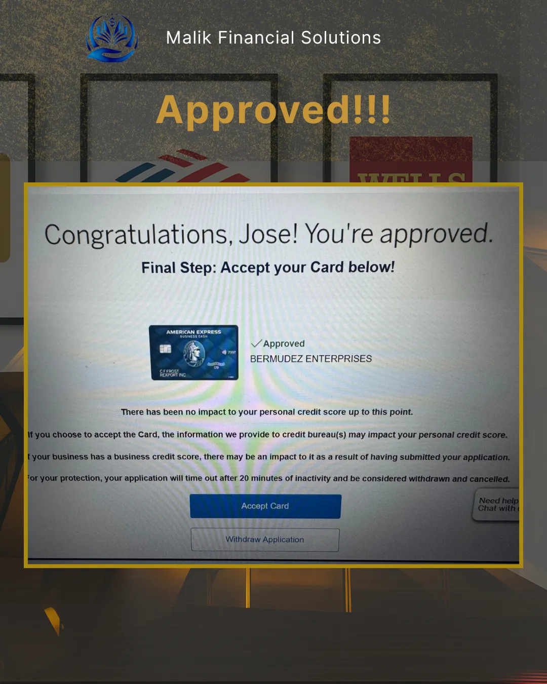 From Denied Loans to Approved! “Securing funding felt overwhelming until I worked with Malik Financial Solution. They helped me get approved for a $250,000 line of credit and a $20,000 business credit card. The process was straightforward, and their guidance made everything stress-free. This funding is already helping me scale my business faster than I imagined.”