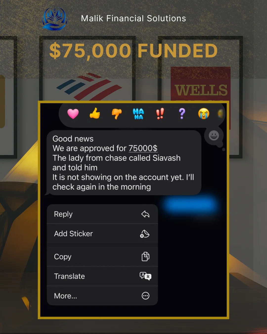 I can’t thank Malik Financial Solution enough for their help. With Abrar’s guidance, I was approved for $75,000 in funding. The process was simple, professional, and faster than I expected. This funding is already giving my business the boost it needed.